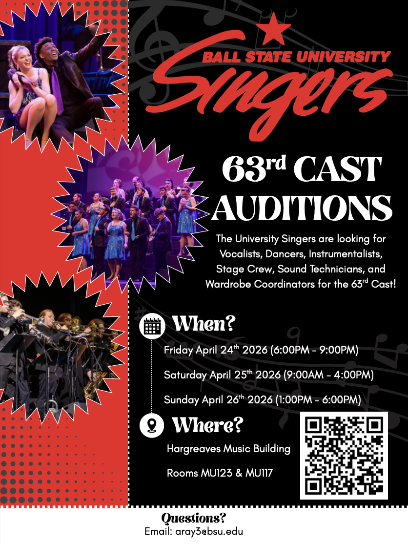 Auditions are open to any student admitted to or enrolled at Ball State University.